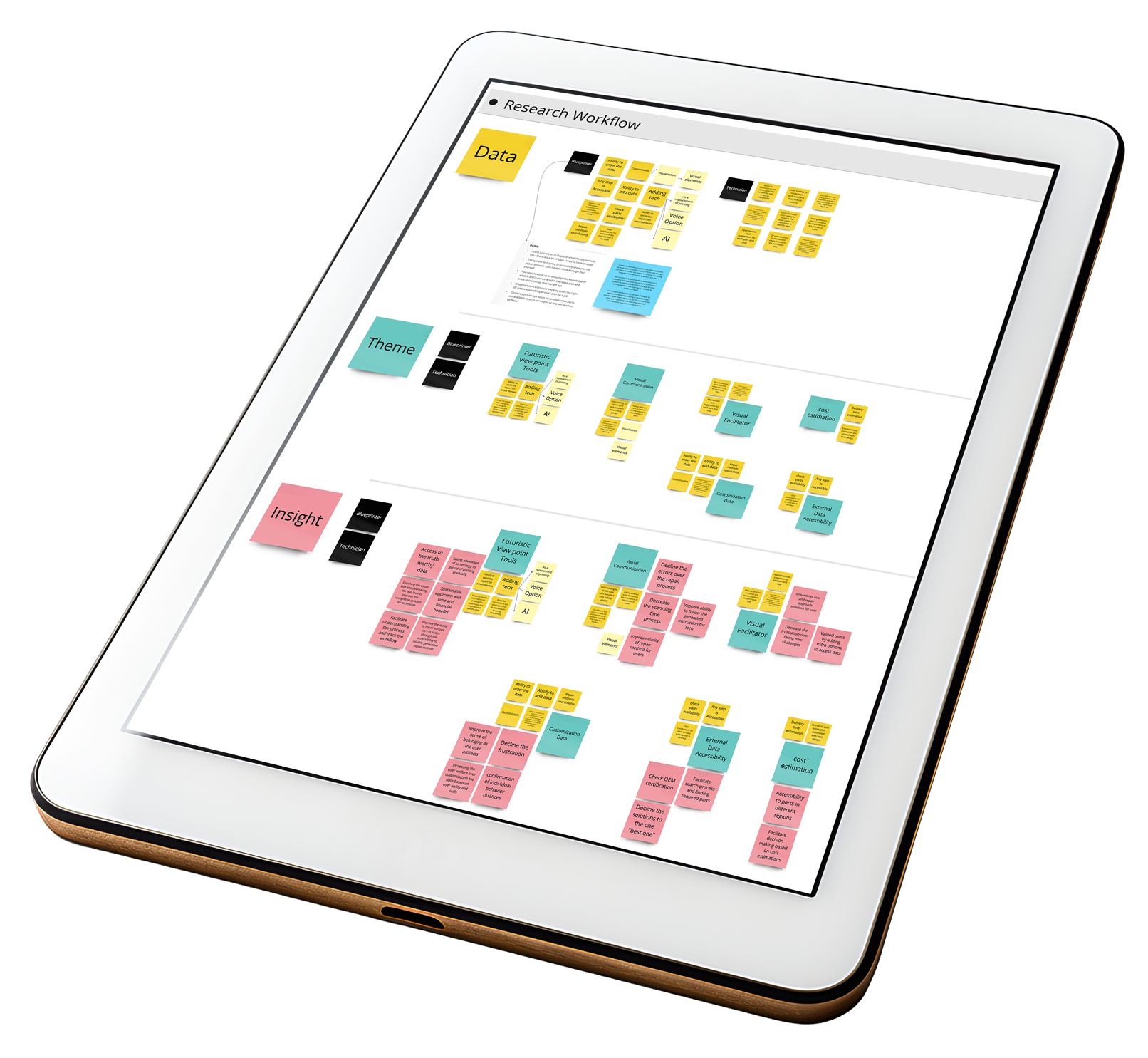 To streamline the design process, we began by comprehensively collecting user data, which we then meticulously organized into meaningful clusters such as theme and insight. These clusters served as the foundation for shaping our design criteria, with a primary focus on simplifying the user process and delivering the most essential information to users in real-time during their journey.